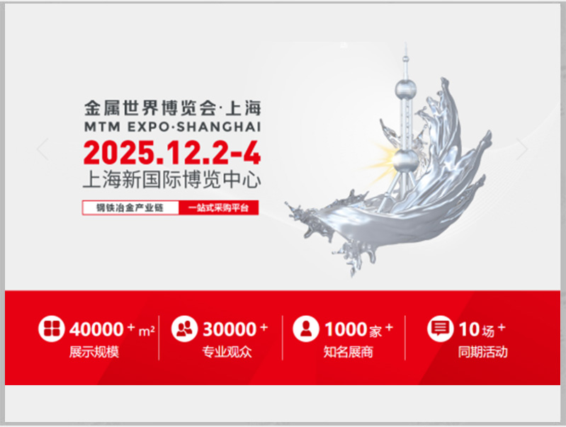 2025金屬世界博覽會(huì)(MTMEXPO)將于2025年12月2日-4日在上海新國際博覽中心盛大舉辦。本屆博覽會(huì)將以“科技創(chuàng)新、綠色低碳、智能制造、***集約&rd...