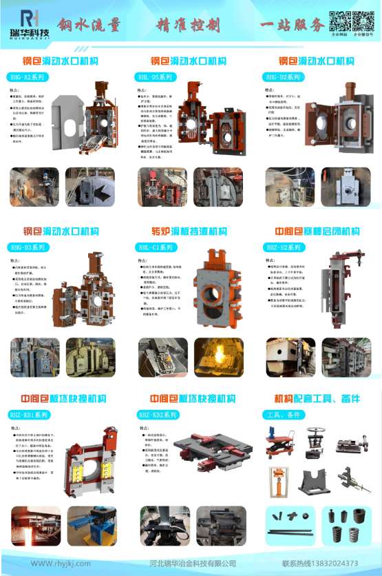轉爐出鋼口擋渣系統(tǒng) 鋼包滑動水口機構 鋼包吹氬鎖緊機構 中間包快換機構 中間包塞棒機構 電爐擋渣機構 液壓設備 輔助工具