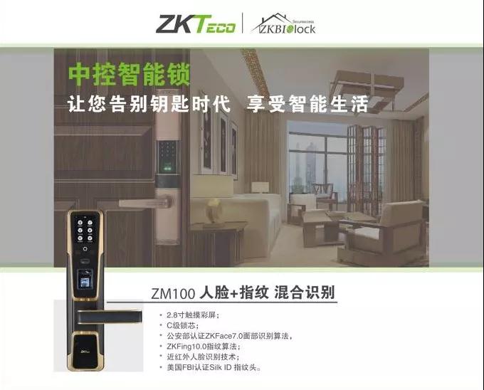 ZM100混合生物識別智能鎖,擁有行業內高質量標準的120小時鹽霧測試和30萬次使用壽命測試,配備2.8寸觸摸彩屏和可夜間識別的近紅外攝像頭,標配Slik ID光學指紋頭,采用ZK Face7.0算法的人臉識別技術.擁有高速CPU,可便捷升級,使用高續航聚合物鋰電池,可連續使用6000到8000次左右。是中控門禁智能鎖發展歷程的標志性產品,也是中控門禁智能鎖打入市場和適應消費者需求的主打產品。