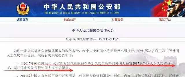2017版外國人永久居留身份證已開始使用,6月16日起,公安部對經批準取得在華永久居留資格的外國人簽發2017版外國人永久居留身份證,同時停止簽發現行外國人永久居留證。