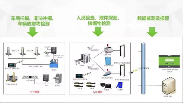 混合生物識別人、車、物安檢整體解決方案主要是以中控智慧百傲瑞達安防管理平臺為基礎,集成新一代反恐技術、車輛檢查管理、乘客物品安檢以及大數據分析,形成了新一代高集成反恐檢查系統。運用近距離無線通訊、傳感網絡、海量數據存儲、數據挖掘、云計算、信息安全等關鍵技術,建立功能更加完善、更加安全高效的安全檢查系統。