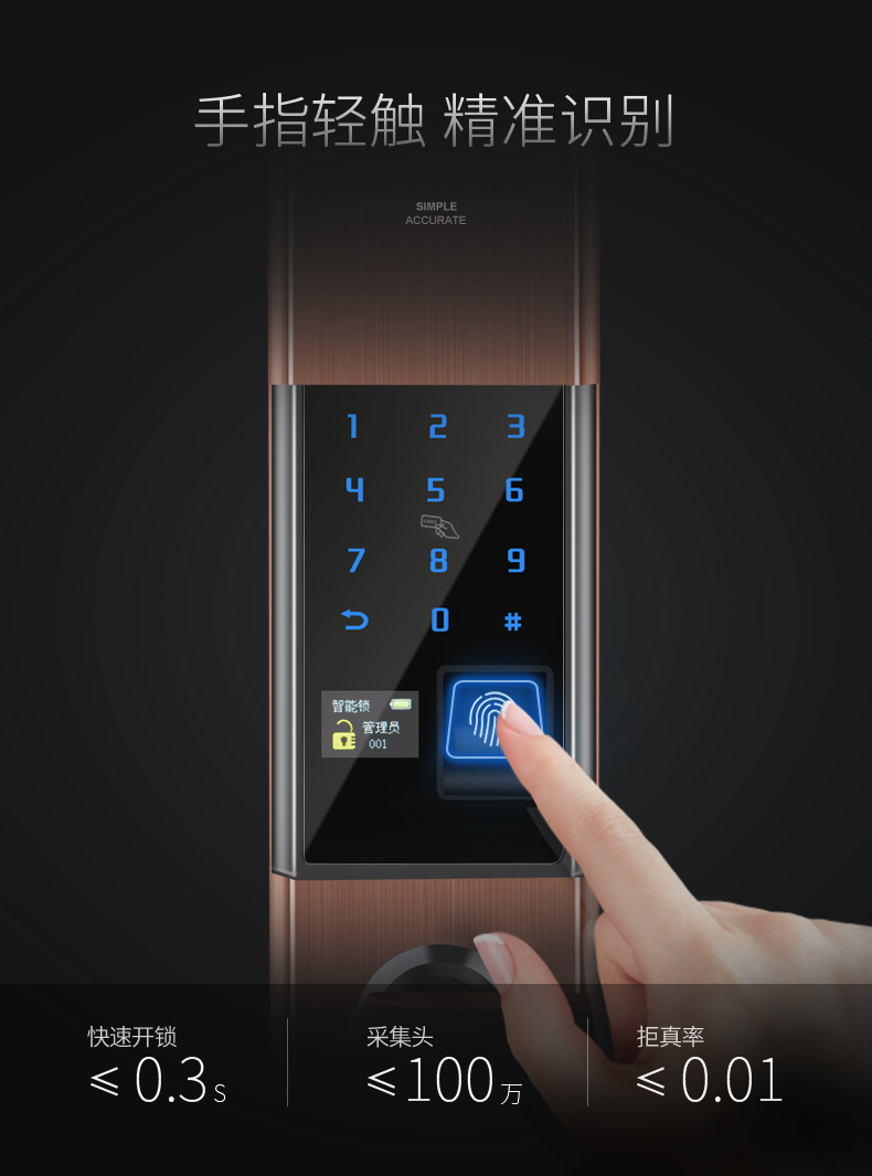 雖然如此,如果比較起來的話,指紋鎖還是比密碼鎖好用。因為指紋鎖只需要指紋在指紋鎖頭上按一下就好了,而密碼鎖則需要輸入一連串的數(shù)字才行,從開鎖的效率上要低一些。而且密碼鎖是需要記住密碼的,一家人使用,倘若是一個新的密碼,開始用的時候會比較費事。但如果是輸入指紋的話,一家人是沒有這么大的使用門檻的。密碼鎖還有一個問題就是,密碼如果被人看了去,就容易打開家門。當然在安全性上,以前的指紋鎖也不一定就比密碼鎖高多少,因為以前的指紋鎖大多采用光學指紋頭,所以容易被復制的指紋打開。但指紋與密碼的開鎖方式,往往是出現(xiàn)在同一款鎖上的,這樣用起來也可以避免單用一種打不開的情況——下圖的玻璃門智能鎖就是這樣,此外還帶了半導體指紋頭和虛位密碼設(shè)計,安全性有了提高。