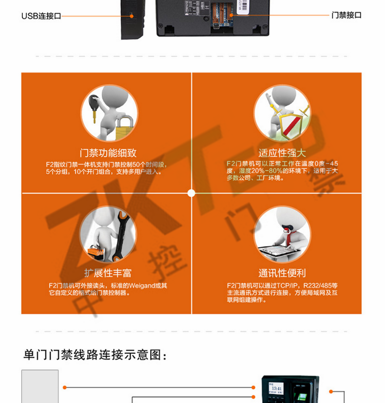 · 門禁功能 : 50個時間段,5個分組,10個開門組合,支持多用戶進(jìn)入,10A/12VDC繼電器開關(guān)量或電壓輸出