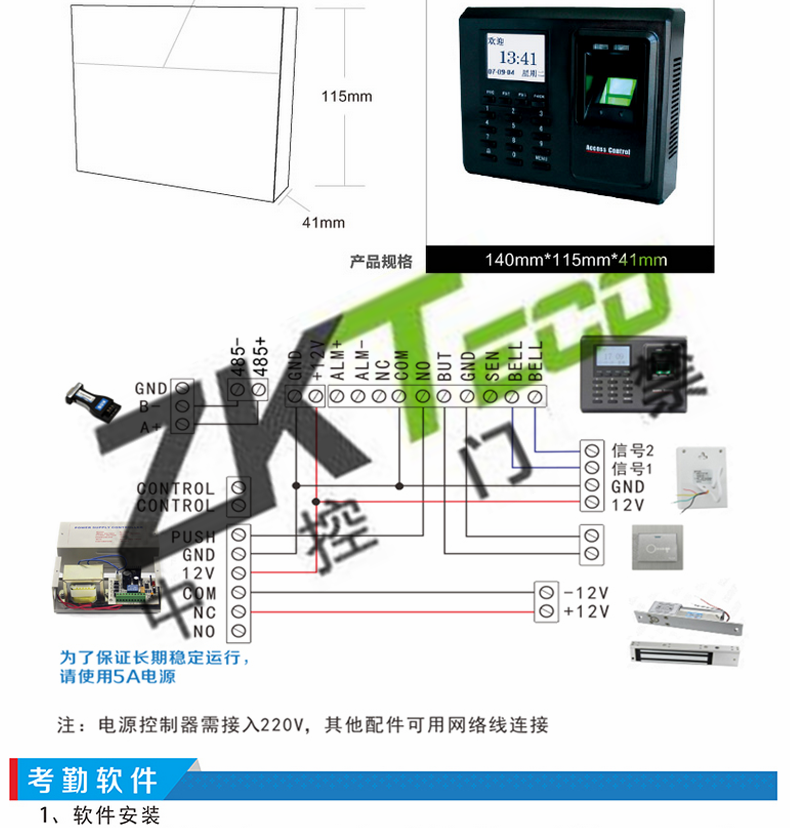 · 軟件 : 支持實時監(jiān)測門禁軟件,指紋讀卡器軟件和考勤軟件等