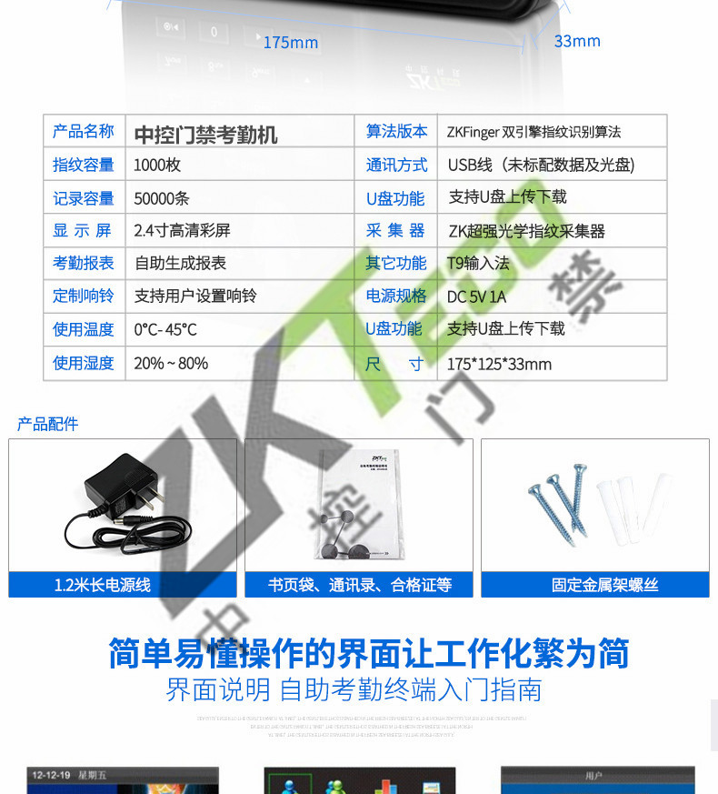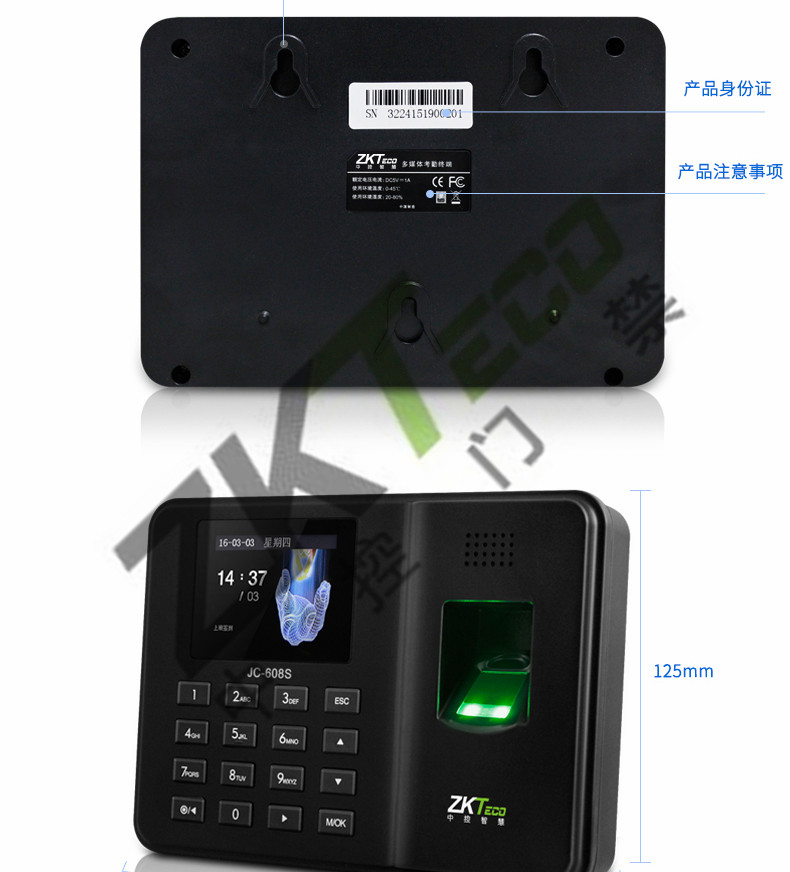 JC-608S指紋考勤機(jī) 高清彩屏打卡機(jī)