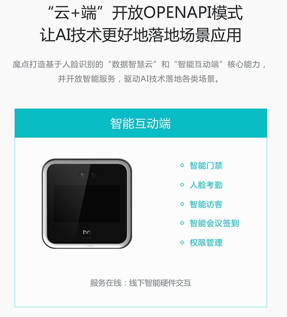 魔點D2門禁機介紹: 魔點D2門禁機造型簡單,體積小巧,尺寸為150*150*17.8mm,整機重量為355.5g,搭載了兩個3*3微米、1/2.7英寸傳感器的大攝像頭和一塊5吋的屏幕,結合獨家的人臉識別算法技術,不但可以多角度準確進行人臉識別,還可以顯示刷臉開門打卡是所需的必要信息。